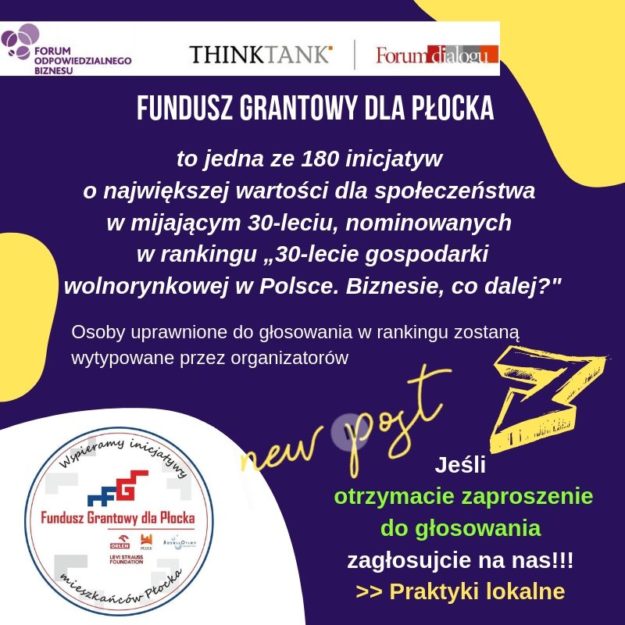 Pragniemy się pochwalić!!! Zostaliśmy jedną ze 180 najistotniejszych w Polsce inicjatyw społecznych biznesu. Ranking powstał w ramach projektu „30-lecie gospodarki wolnorynkowej w Polsce. Biznesie, co dalej?”, organizowanego przez THINKTANK wspólnie z Forum Odpowiedzialnego Biznesu. Więcej informacji: http://odpowiedzialnybiznes.pl/aktualno%C5%9Bci/oglaszamy-liste-nominacji-do-rankingu-30-najbardziej-znaczacych-projektow-spolecznych-biznesu/