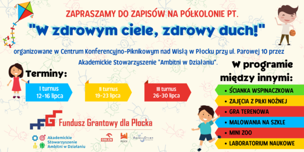 „W zdrowym ciele, zdrowy duch” to motto półkolonii dla dzieci, które zapoznały się z różnymi technikami malowania na szkle, wzięły udział w grze terenowej oraz aktywnie uczestniczyły w zabawach na świeżym powietrzu. Dodatkowo młodzi uczestnicy półkolonii mieli możliwość doskonalenia swojej postawy ciała dzięki ćwiczeniom, szczególnie ważnym po czasie spędzonym przed monitorami komputera w czasie pandemii…