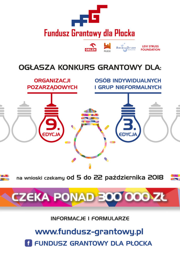 Fundacja „Fundusz Grantowy dla Płocka” zaprasza organizacje pozarządowe oraz osoby indywidualne i grupy nieformalne do składania wniosków o wsparcie projektów skierowanych dla płocczan. Wzorem lat ubiegłych środki finansowe pochodzą od Fundatorów Fundacji – PKN ORLEN i Basell Orlen Polyolefins oraz darowizny Levi Strauss Foundation. Najbliższa edycja jest wyjątkowa ze względu na powiązanie warunków przyznawania grantów…