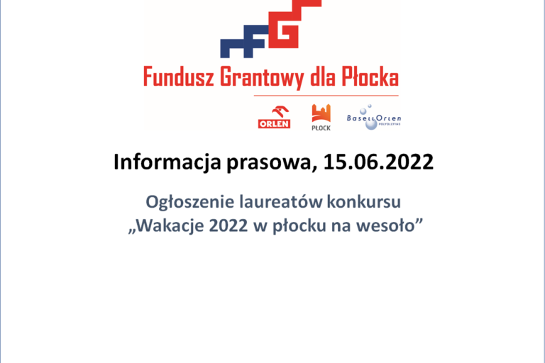 Oficjalne ogłoszenie laureatów konkursu „Wakacje 2022 w Płocku na wesoło”