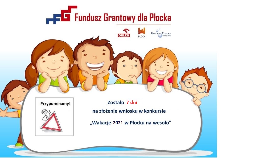 maj102021Szanowni Państwo!Zostało 7 dni na złożenie wniosku w konkursie „Wakacje 2021 w Płocku na wesoło”. Category: Aktualności10 maja 2021